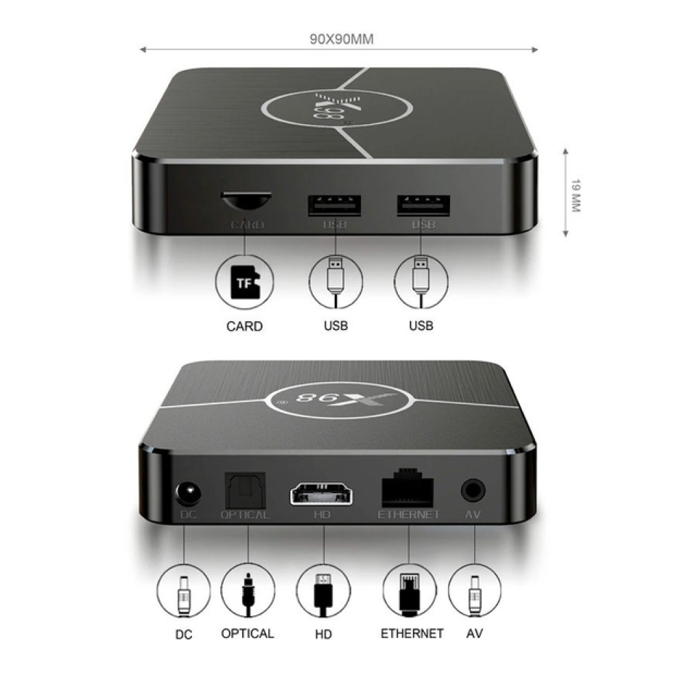 Цей комплект — ідеальне рішення для домашнього мультимедіа. Приставка X98 Plus із 4 ГБ оперативної і 64 ГБ вбудованої пам’яті забезпечує стабільну роботу Android 11. Amlogic 905W2 гарантує плавне відтворення відео, включаючи 4K. У комплект входить підготовка пристрою (налаштування Android), а також аеро‑пульт G10s із мікрофоном і гіроскопом для зручного керування жестами та голосом. До того ж — доступ до YouTV на місяць із повним пакетом розважальних каналів. Серед мережевих переваг — підтримка AirPlay, Bluetooth, DLNA, Ethernet, Miracast, WiDi та Wi‑Fi для легкого підключення до екосистем.
